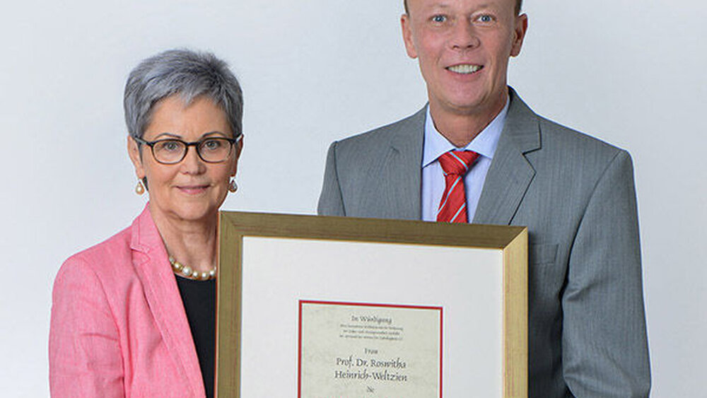 Ihr berufliches Lebenswerk mache Prof. Roswitha Heinrich-Weltzien zu einer der renommiertesten Expertinnen im Bereich der präventiven Kinderzahnheilkunde in Deutschland und über die Landesgrenzen hinaus, sagte Lehr und gab einen kurzen Überblick über den Werdegang der Preisträgerin.