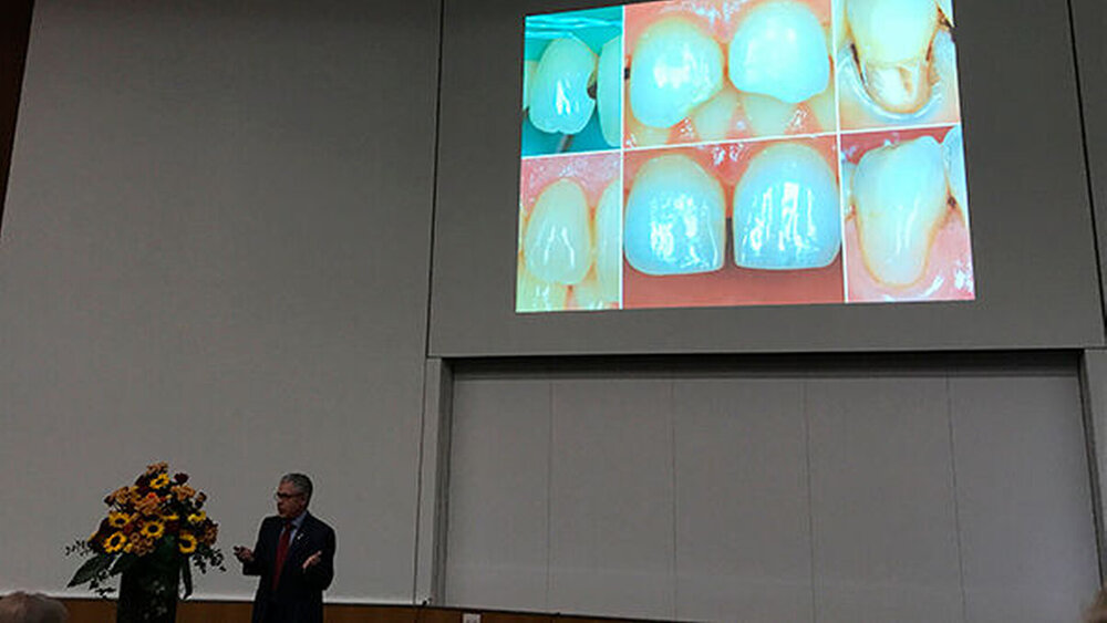Einer der führenden Kariesforscher des deutschsprachigen Raums, Prof. Dr. Adrian Lussi, wird Ende Oktober seinen Lehrstuhl übergeben - nach über 30 Jahren an der Uni Bern. Mit einem Symposium zu seiner Emeritierung wurde er als Wissenschaftler, Lehrer, Kollege und Freund gefeiert. Ein Überblick in Bildern.