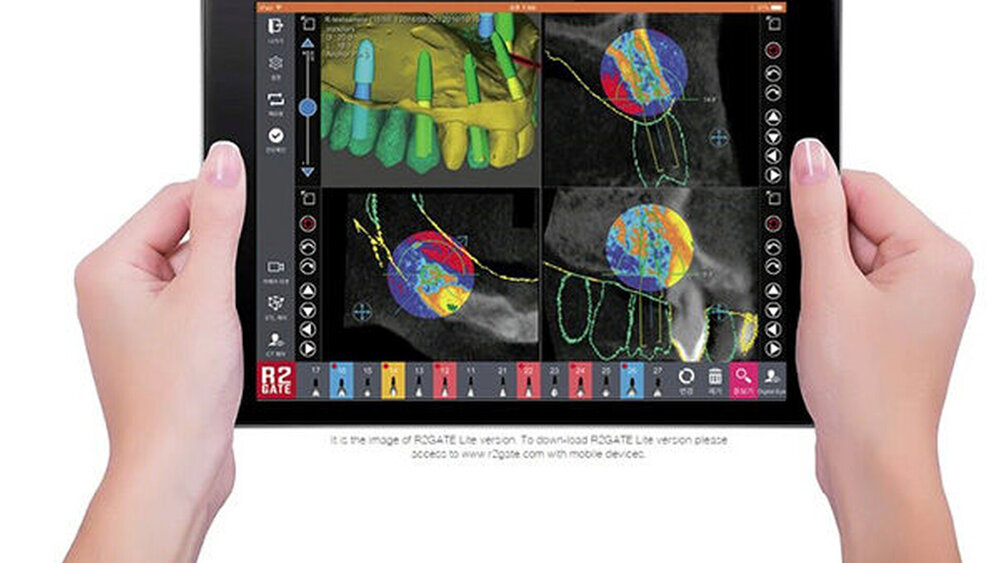 R2 Gate bietet dem Behandler eine praktikable, intuitive und kostengünstige Lösung. Der Behandler erstellt für den Patienten eine DVT-Aufnahme und zusammen mit dem Abdruck des Patienten plant das R2 Gate-Center die OP zusammen mit dem Behandler. Anschließend erhält der Behandler die Bohrschablone zusammen mit einem gedruckten Modell von einer der R2 Gate-Produktionsstätten. Der Preis für eine 3D-Bohrschablone liegt bei 79 Euro, genau wie der Preis der Planung, der unabhängig von der Implantatanzahl ist. Bei einer Komplettkiefer-Restaurationen wird neben der geführten Chirurgie-Kassette immer auch ein Auswahl-Koffer an Multi-Unit-Abutments zur OP mitgeliefert. Dies führt zur einer Behandlungssicherheit und wird Seitens der Anwender geschätzt.