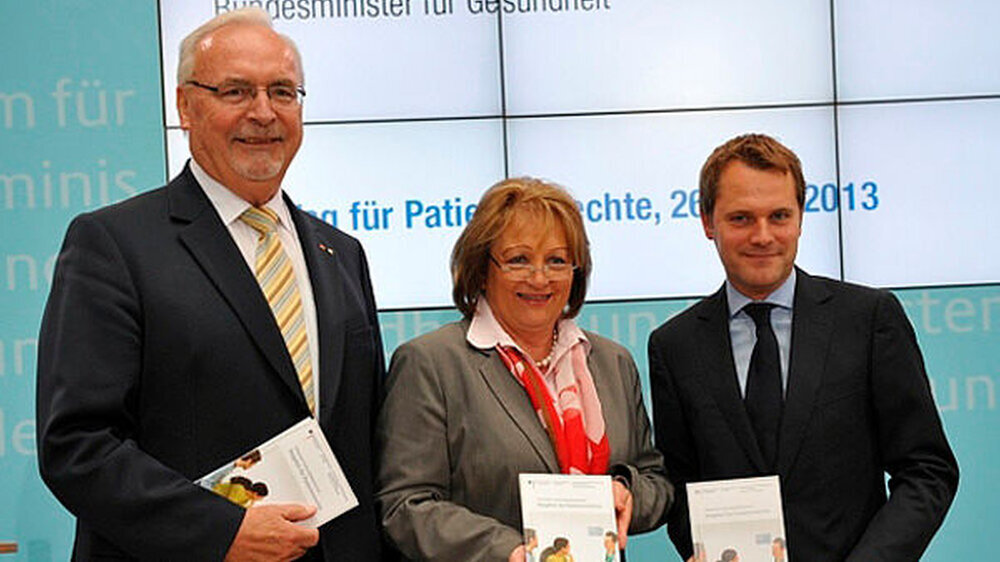 Bahr, Bundesjustizministerin Sabine Leutheusser-Schnarrenberger und Wolfgang Zöller, Patientenbeauftragter der Bundesregierung, bewarben am Mittwoch auf einer Veranstaltung der BAG Selbsthilfe zum Thema Patientenrechte im Bundesgesundheitsministerium die Broschüre und betonten den hohen Stellenwert der Patientenrechte in Deutschland.