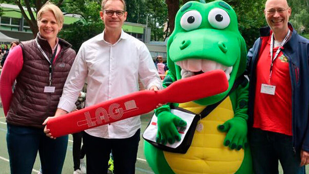 Gemeinsam mit ihren Lehrern hatten die Kinder anlässlich der Feierlichkeiten ein buntes Programm auf die Beine gestellt - unter anderem war auch die Landesarbeitsgemeinschaft Berlin zur Verhütung von Zahnerkrankungen (Gruppenprophylaxe) e.V., kurz LAG, mit ihrem Kariestunnel vertreten.