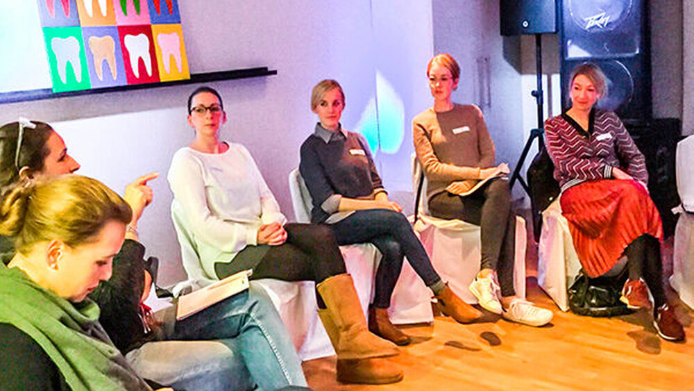 In dem Workshop von Alexandra Daskalakis – Inhaberin des Instituts remotivation.de –hatten die Zahnärztinnen die Gelegenheit Techniken zu erlernen, um einerseits in jeder gewünschten Situation souverän zu wirken und andererseits durch Verständnis und Wertschätzung dem Patienten oder Mitarbeiter gegenüber für eine gelassene, entspannte Stimmung zu sorgen. Besonders angetan waren die Teilnehmerinnen von dem Angebot, Beispiele aus der eigenen Praxis mit der Referentin zu diskutieren.