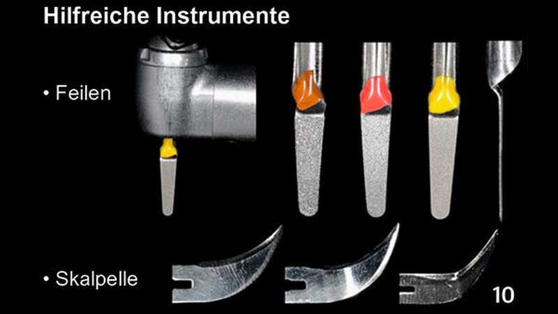 Die erodierten bzw. sklerotisch veränderten Dentinoberflächen wurden vor der Applikation des Adhäsivsystems mit einem Feinkorndiamanten zur Verbesserung der Haftkräfte angefrischt (Camargo et al. 2008; Zimmerli et al. 2012).