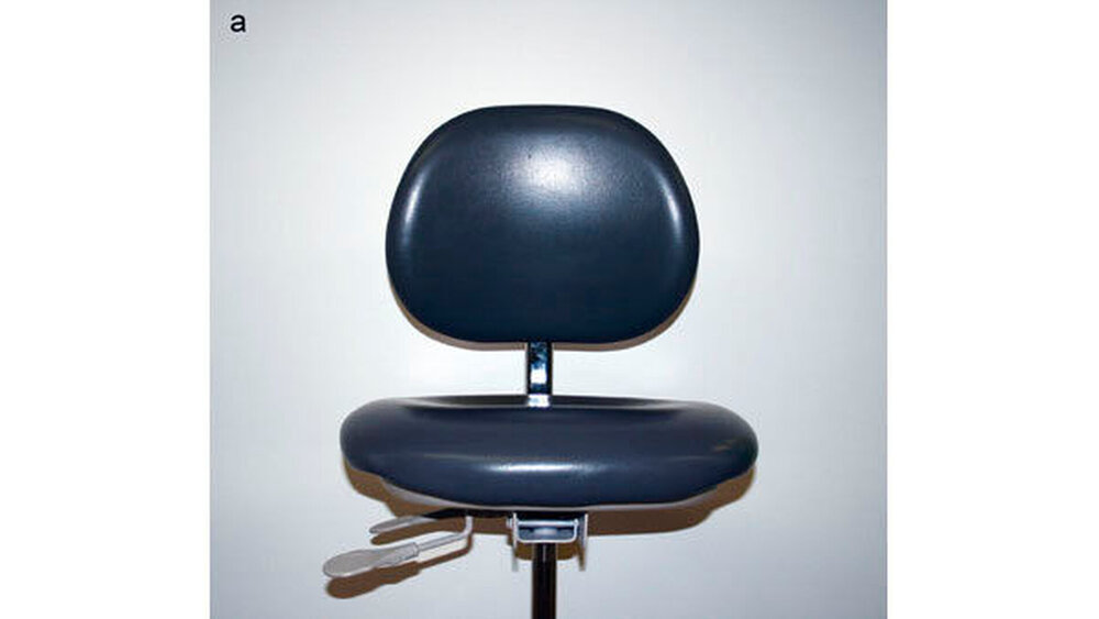 der A-dec standard Doctor‘s stool, type 1601 ohne Abschrägung (Abbildung 2a; A-dec, Newberg, Oregon, USA), als Vertreter eines Standardstuhls.