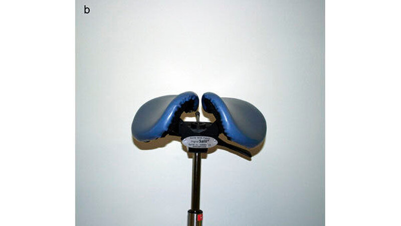der Salli MultiAdjuster (Abbildung 2b; Salli, Rautalampi, Finland) als Vertreter der aktuell offensichtlich zunehmend beliebteren Sattelstühle.