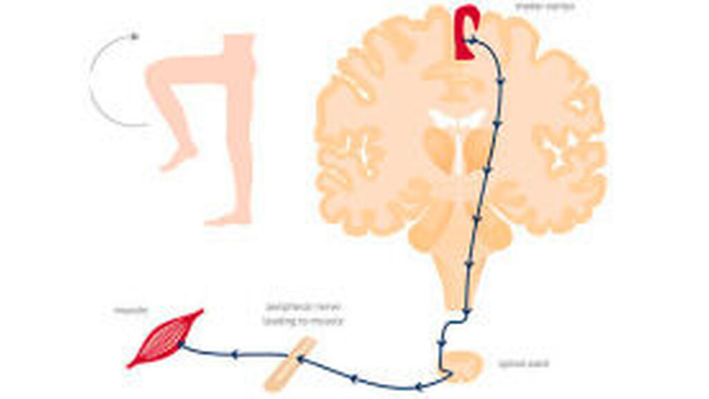 Damit der Roboteranzug funktioniert, braucht er einen Träger, der eine willentliche Bewegung ausführen möchte. Das läuft normalerweise so ab: Das Gehirn schickt ein Signal über das Rückenmark und die umliegenden Nerven in einen Muskel - zum Beispiel in einen Arm oder ein Bein.