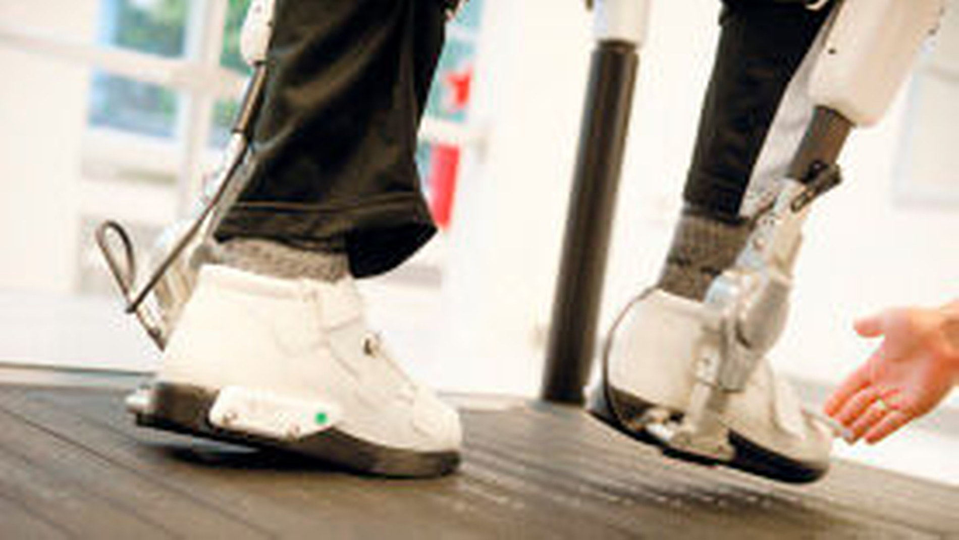 Einem gelähmten Patienten stehen aber nur abgeschwächte Signale im Muskel zur Verfügung, die in Konsequenz dazu führen, dass er nicht mehr laufen kann. Hier kommt HAL ins Spiel: Er nimmt die Signale über Sensoren auf, die auf der Haut des Patienten befestigt sind, und setzt so seine Motoren im Hüft- und Kniegelenksbereich in Aktion.