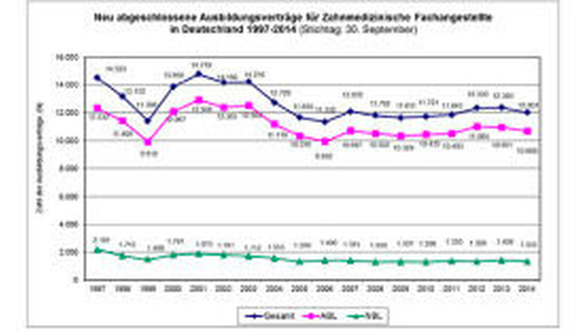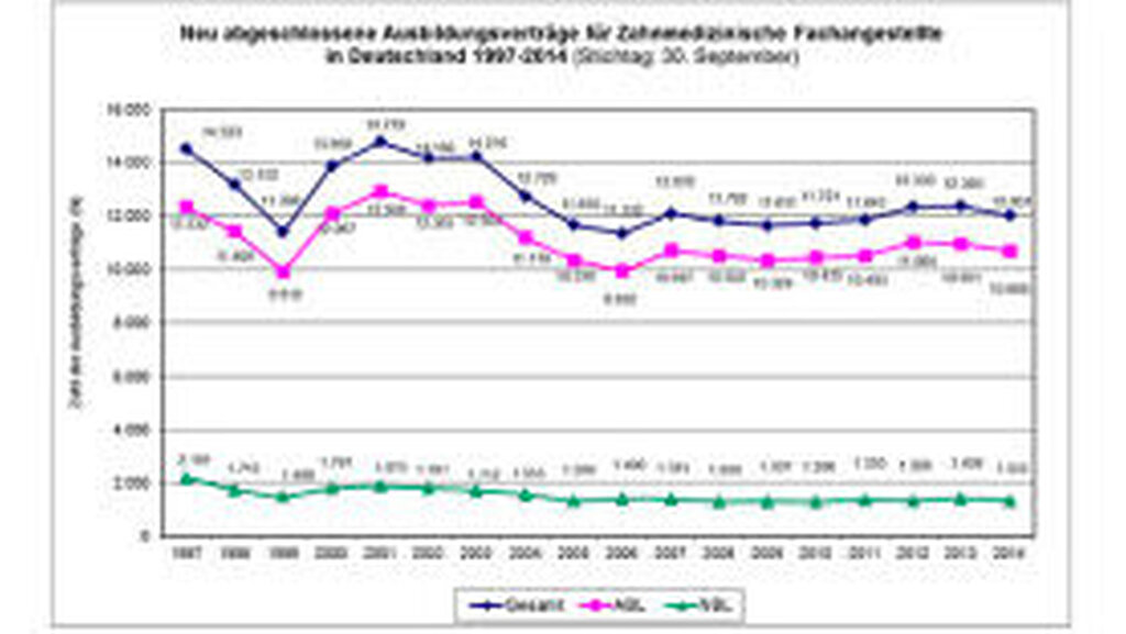 Die jüngste Statistik der Bundeszahnärztekammer zur Zahl der neu abgeschlossenen und noch heute bestehenden ZFA-Berufsausbildungsverträge bezieht sich auf den Zeitraum vom 1.10.2013 bis zum 30.9.2014.