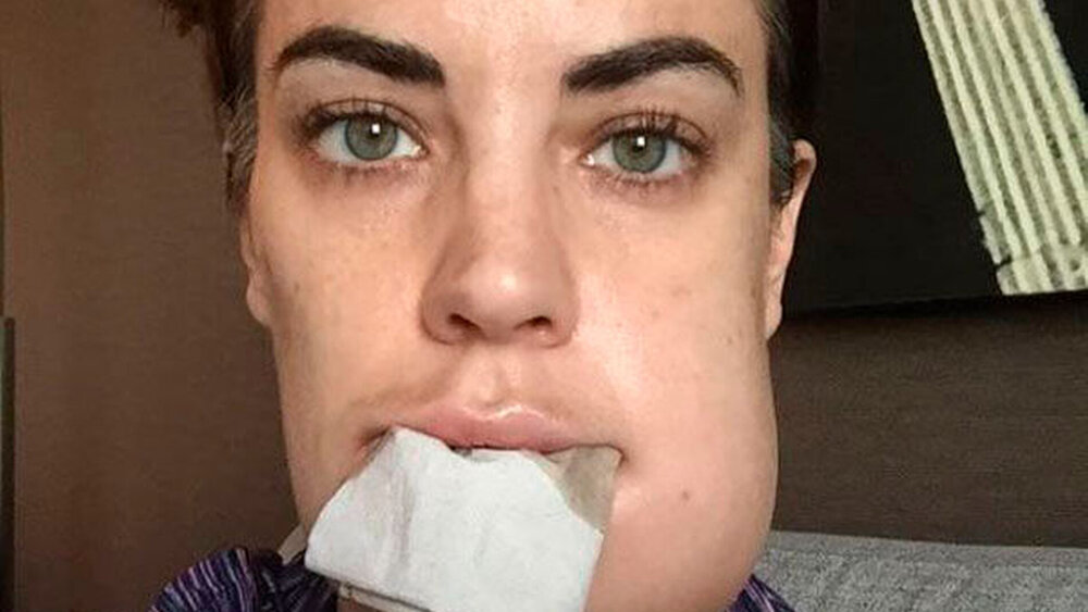 Sie musste 30 Mal bestrahlt werden und sich zwei Chemotherapien unterziehen. Nach der lebensrettenden OP erfolgte die Nahrungsaufnahme über eine Sonde im Bauch. Ihr Mund und Kiefer waren lange stark angeschwollen. Die Heilung verlief langsam.