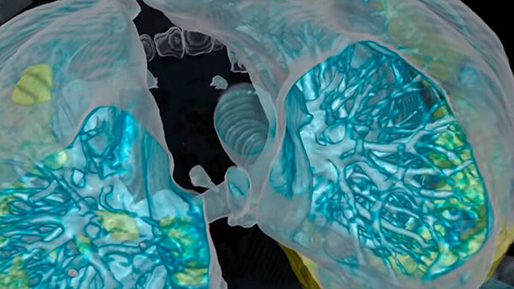 erstellte daraufhin einen 3-D-Scan der befallenen Lunge: Das Bild zeigt, wie umfassend sich das Virus dort verbreitet - nicht punktuell.