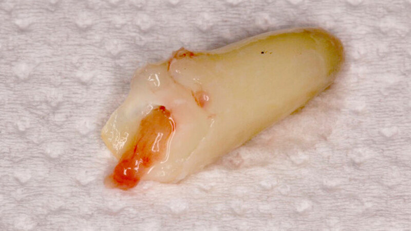 Und da sage nochmal jemand, die Zahnmedizin habe keine Poesie: Laut Zahnärztin Susanna Vieregge zeigt diese Hyperämie des Pulpagewebes nach Trauma, wie die "Natur mit einer gewaltigen Leistung das Leben verteidigt".