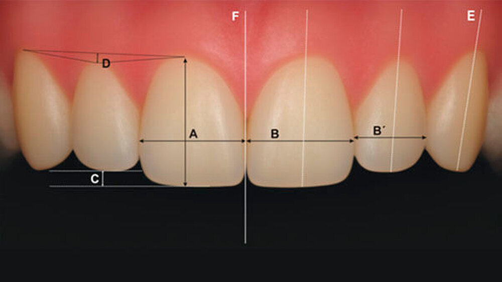 Für Zahnproportionen spielt der goldene Schnitt offenbar keine Rolle. Oberkieferfrontzahnbögen, die nach dem antiken Proportionsgesetz gestaltet werden, wirken sogar weniger attraktiv (1). Dagegen wird zum Beispiel ein Verhältnis zwischen Länge und Breite mittlerer Frontzähne von etwa 0,8 als schön eingeschätzt (2). Eine weitere akzeptierte Regel besagt, dass Schneidekanten bei seitlichen Inzisiven zirka 1,5 mm weiter kranial verlaufen sollten als bei mittleren (1, 3).