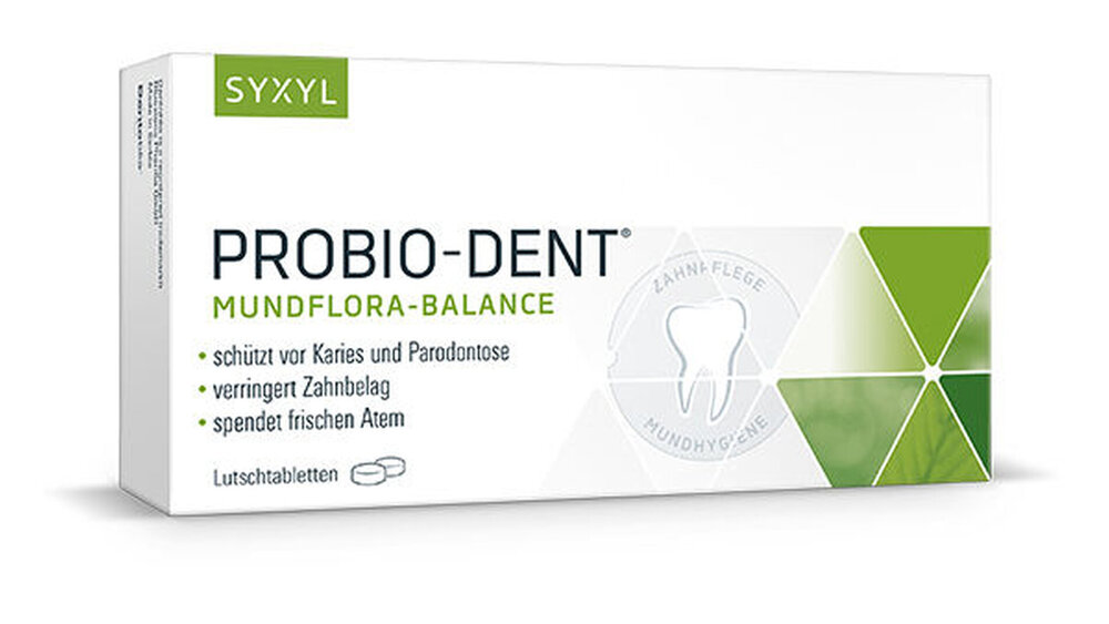 Einmal täglich abends nach dem Zähneputzen angewendet, gleicht eine Lutschtablette Probio-Dent mit ihren 100 Millionen aktiven M18-Keimen Dysbalancen der Mundflora aus. Prophylaktisch und insbesondere bei bereits bestehenden Entzündungsherden, bei Implantaten sowie nach der professionellen Zahnreinigung, ist die regelmäßige Anwendung empfehlenswert. Das gelatine-, laktose-, gluten- und hefefreie Probiotikum ist die perfekte Ergänzung zur täglichen Zahn- und Mundhygiene. Mit seinem erfrischenden Geschmack nach Pfefferminze sorgt Probio-Dent (rezeptfrei, Apotheke) zudem für frischen Atem.