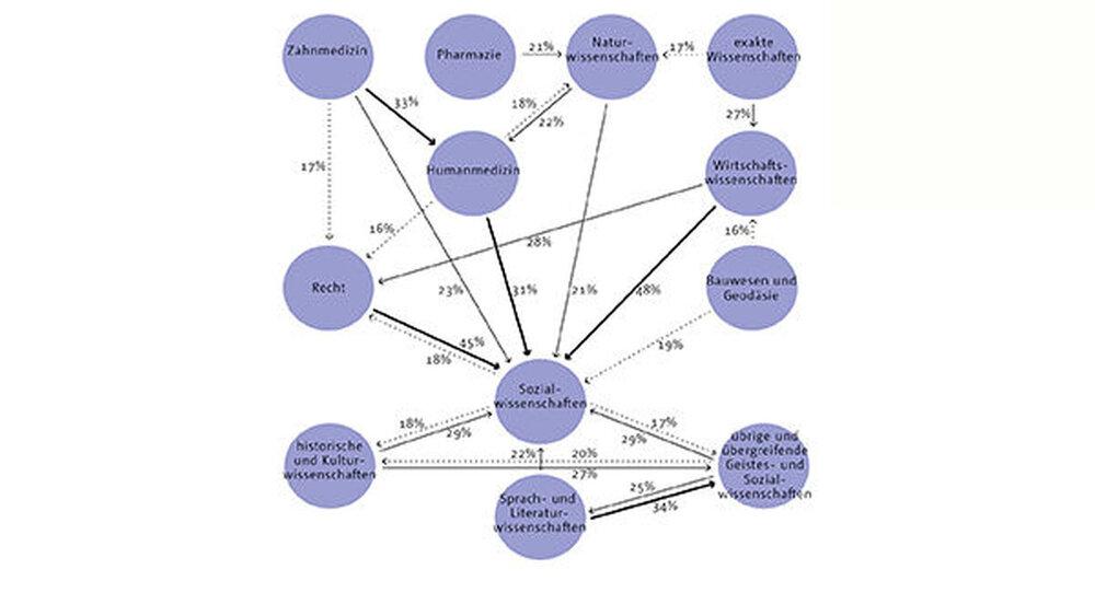 Neben der Zahnmedizin wird in Geistes- und Sozialwissenschaften wie historische und Kulturwissenschaften oft gewechselt. Beständig sind hingegen Maschineningenieure und Theologen.