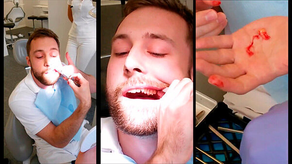 Rylto zog sich einen oberen Achter und lässt die OP dabei auch noch abfilmen. Nach seinem gelungenen Eingriff hält er den blutigen Zahn in die Kamera - und fügt hinzu: "Bitte beachten Sie: Versuchen Sie nicht so etwas bei sich selbst durchzuführen. Ich bin Zahnmedizinstudent, hatte eine professionelle Ausrüstung, und es war ein Zahnarzt anwesend, während ich das getan habe."