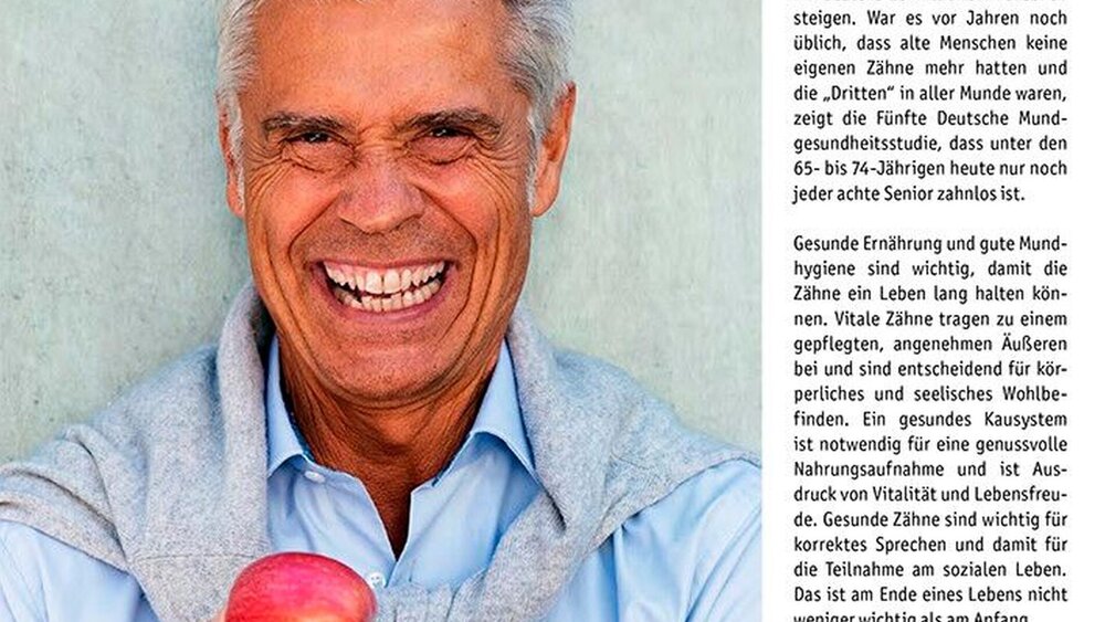 In den Zahnarztpraxen in Thüringen, Brandenburg, Niedersachsen, Sachsen und Sachsen-Anhalt liegt ab sofort die neuste Ausgabe der kostenfreien Patienteninformation „ZahnRat“ aus. Darin erfahren Patientinnen und Patienten viel Wissenswertes über die Veränderungen des Mundraumes im Alter. Mit Hinweisen zu gesunder Ernährung, guter Mundhygiene und regelmäßigen Zahnarztbesuchen heißt die Botschaft: „Mit Biss bis ins hohe Alter!“ So können die eigenen Zähne ein Leben lang halten.