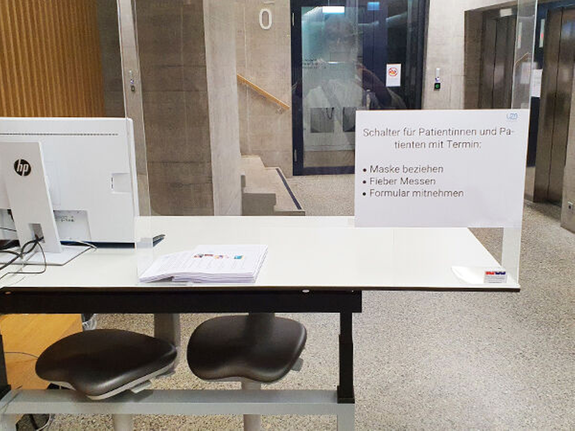 Umstellung auf reinen Notfallbetrieb. Alle Stockwerke mit Ausnahme des Erdgeschosses wurden weitgehend geschlossen, sämtliche Patiententermine um- bzw. abbestellt und die Öffnungszeiten angepasst.