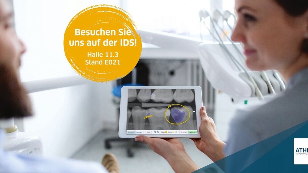 Zusätzliche Unterstützung für die perfekte Patientenberatung liefert die neueste Erweiterung der Athena-App: die KI-gestützte Röntgenbildanalyse. Präsentiert wird diese exklusiv auf der IDS, Halle 11.3, Stand E021 oder nach Vereinbarung einer individuellen Online-Präsentation.