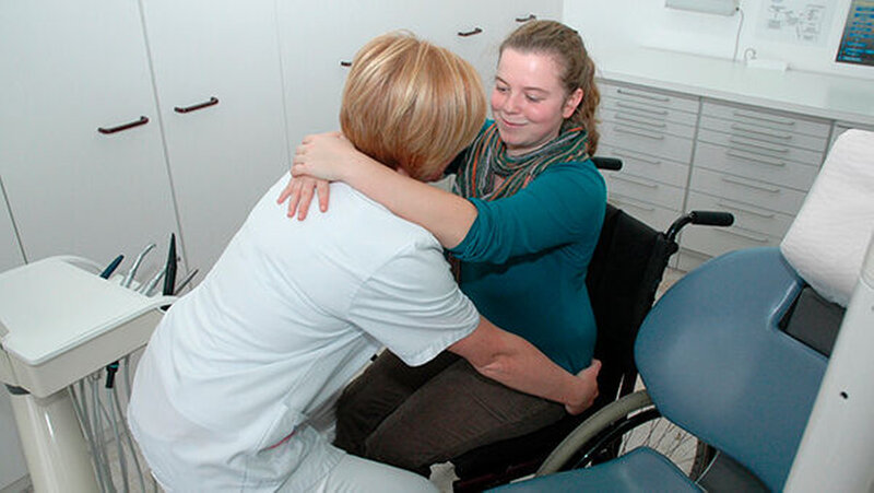 Der Übergang vom Roll- in den Behandlungsstuhl und zurück muss das Team einüben und für jeden Patienten gewissenhaft vorbereiten: Der rückenschonende Patiententransfer in 10 Schritten - eine Bilderstrecke!
