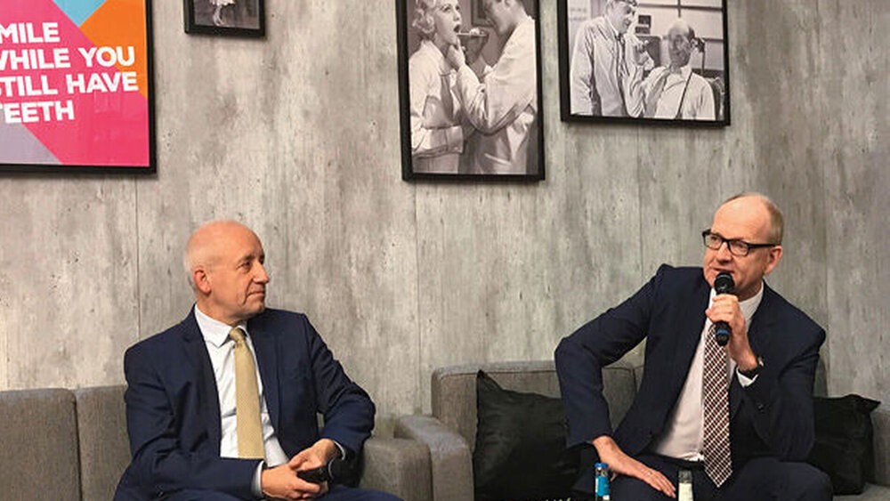 Trotz der üblichen Ermattung am letzten Messetag schaffte es die Gesprächsrunde, die interessierten Zuhörer – am gemeinsamen Messestand der ZA mit der Zahnärztekammer, der Kassenzahnärztlichen Vereinigung, dem FVDZ sowie dem Deutschen Zahnärzte Verband aus Nordrhein – zu „fesseln“. Was auch an einem bemerkenswert offen antwortenden Bundestagsabgeordneten lag. Auf die Frage, was denn seine Motivation für das nun bundespolitische Engagement für die FDP sei, antwortete Schinnenburg, der bis Ende 2017 als Zahnarzt tätig war und den Spaß am Behandeln und weniger an der Bürokratie deutlich herausstellte: „Das wahre Leben in den Bundestag bringen und das stete Anwachsen der Bürokratie zu verhindern.“