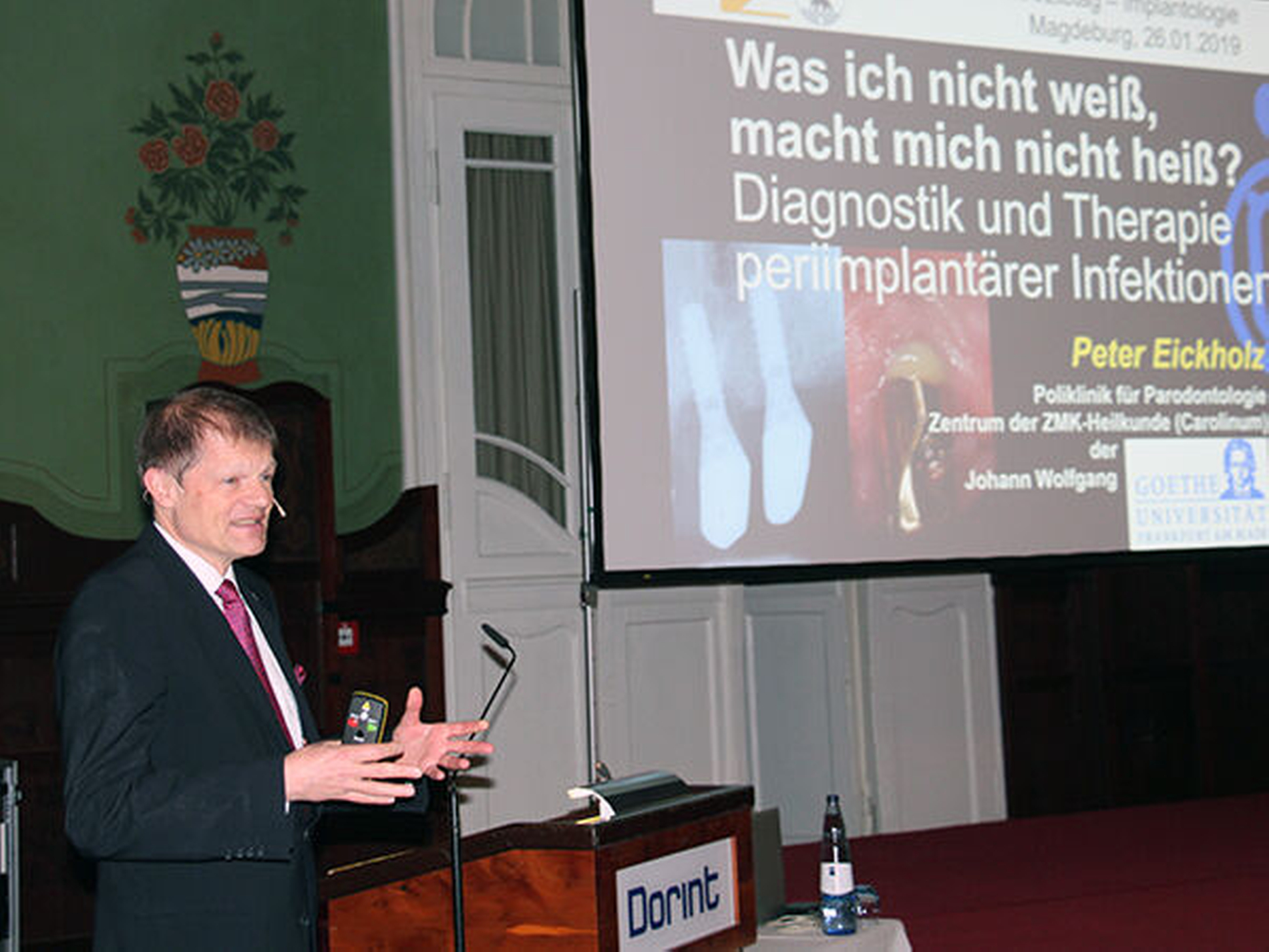 Über Diagnostik und Therapie periimplantärer Infektionen referierte Universitätsprofessor Dr. Peter Eickholz, Frankfurt am Main. Das Problem dieser Infektionen sei, dass sie schwer zu erkennen seien.