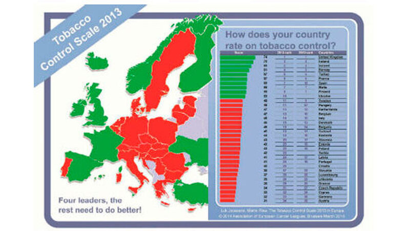 Daher landet die Bundesrepublik im europäischen Vergleich der Maßnahmen zur Eindämmung des Tabakkonsums zum zweiten Mal in Folge auf dem vorletzten Platz, gefolgt von Österreich. Der Tabakkontrollskala liegt eine Befragung zugrunde, die in 35 europäischen Staaten durchgeführt wurde. Am 23. März wurden die Ergebnisse bei der 7. Europäischen Tabakkontrollkonferenz in Porto vorgestellt.