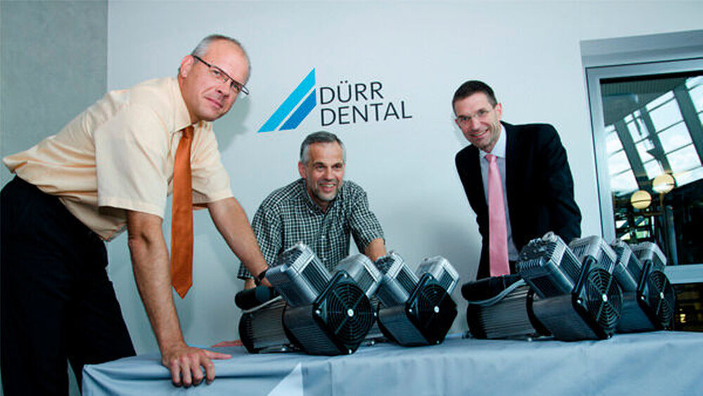 „Das intensive Lernen durch praktisches Tun verspricht den größten Erfolg. Junge Menschen erlernen ihren Beruf doch am besten durch Spaß, Interesse und positive Erlebnisse. Daher übergeben wir dem Beruflichen Schulzentrum in Bietigheim-Bissingen heute fünf hochwertige Kompressoren zum Zerlegen undZusammensetzen für die Ausbildung“, sagt Joachim Eppinger, Geschäftsbereichsleiter Equipment der Dürr Dental AG. Er fügt hinzu, dass ein wieder zusammengebauter und laufender Kompressor doch ein schöner Beweis der eigenen Fähigkeiten sei. Daher übergibt das Unternehmen die fünf Kompressoren-Aggregate im Wert von 8000 Euro an den Leiter des Beruflichen Schulzentrums, Stefan Ranzinger, und sein Lehrerkollegium.