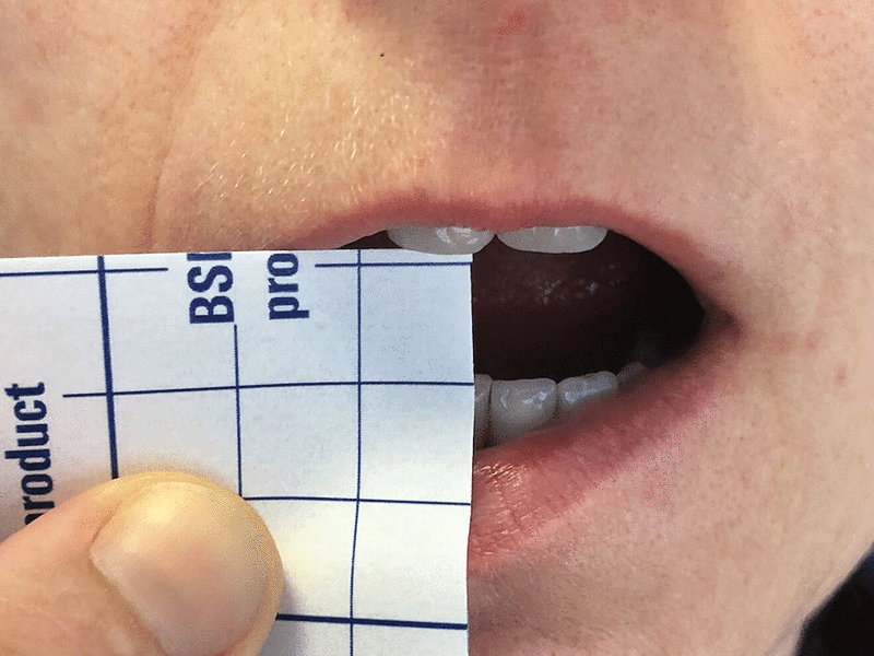 Die Mundöffnung konnte aktiv um maximal 5 mm erweitert werden. Auch in der passiven Führung konnte die Patientin ihren Kiefer nicht vollständig schließen. Bei erneuter Mundöffnung kam es sofort wieder zu einer Einklemmung. Eine passive Erweiterung der Mundöffnung war bis zum schmerzbedingten Abbruch bis 2 cm möglich. Über beiden Kiefergelenken bestand ein Klicken, die Kaumuskulatur war weich und bis auf den Bereich direkt über dem rechten Kiefergelenk lagen keine Druckdolenzen vor. Klinisch lag damit ein „Closed Lock“-Syndrom vor.