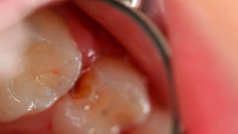Die klinische Untersuchung des Mundraums zeigte eine gesunde Mundschleimhaut, eine gesunde Zunge und ein vollständiges jedoch kariöses Milchgebiss: