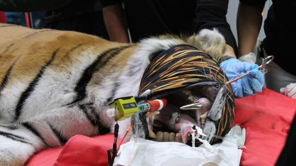 Ein internationales Spezialistenteam hatte am Samstag die Krone eingesetzt, da der Fangzahn aufgrund einer Beschädigung abzubrechen drohte. Bereits vor einigen Wochen waren der dänische Spezialist für Tierzahnmedizin, Dr. Jens Ruhnau, und sein Team zur Auffangstation Tierart nach Maßweiler gereist, um Abdrücke vom Gebiss der Tigerdame zu nehmen.