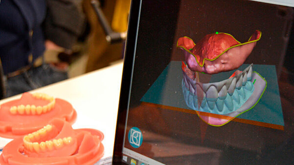 Die ersten Schritte sind weiterhin die gleichen: Vorabformung, Funktionsabformung und Relationsbestimmung in der Praxis. Dann kommt bei zwei neuen, laborbasierten Methoden Kollege Computer ins Spiel: Nach dem Einscannen der Abdrücke und Bissregistrate werden aus Zahndatenbanken patientenindividuelle Aufstellungen vorgeschlagen.