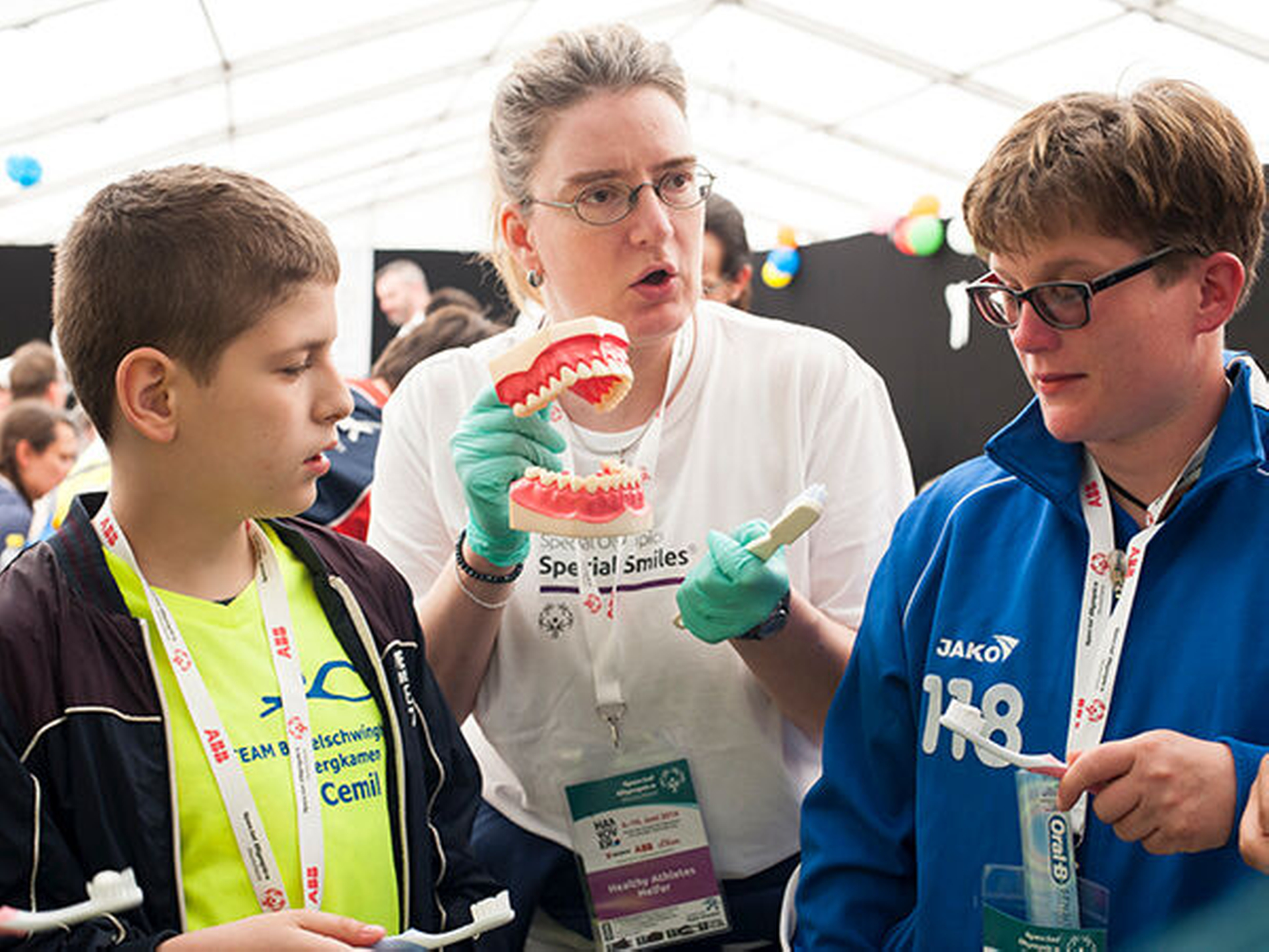 Das Gesundheitsförder- und Präventionsprogramm Healthy Athletes® von Special Olympics umfasst weltweit zielgruppenspezifische Beratungen und Kontrolluntersuchungen. Die Athletinnen und Athleten können diese Angebote bei regionalen, nationalen und internationalen Special Olympics-Sportwettbewerben kostenlos in Anspruch nehmen. Im Rahmen von Special Smiles, dem Mundgesundheitsprogramm von Healthy Athletes®, wurden dieses Jahr 1.000 Athleten auf 11 Events gescreent.