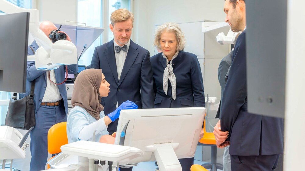 Der Erweiterungsbau ist räumlich mit bereits vorhandenen Ausbildungsflächen verbunden. Die insgesamt sieben miteinander verbundenen Räume beherbergen auf 150 qm Nutzfläche Simulationseinheiten, modernste Intraoralscanner für optische Abformungen, Fräseinheiten, EDV-Lehrmodule und eine Röntgeneinheit. Dazu gehören 21 neue Simulationsarbeitsplätze, an denen die Studierenden in den ersten sechs Semestern alle Behandlungen an Phantompatienten erlernen. „Die neuen Simulationsarbeitsplätze ergänzen optimal die Ausbildungseinheit mit den bereits vorhandenen 32 Simulationsarbeitsplätzen und sind räumlich und logistisch direkt angebunden“, meldet die Uni. Der Freistaat Sachsen investierte 3,2 Millionen Euro in die Baumaßnahme. „Die neuen Flächen bieten mit ihrer modernen Ausstattung hervorragende Bedingungen für die Lehrausbildung unserer Zahnmedizinstudierenden“, bestätigte der Dekan der Medizinischen Fakultät, Prof. Dr. Ingo Bechmann