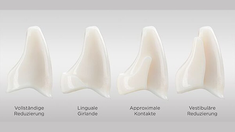 Vollständige Reduzierung („Full Cut-back“): Dieses Verfahren eignet sich für die Vollkeramikverblendung.