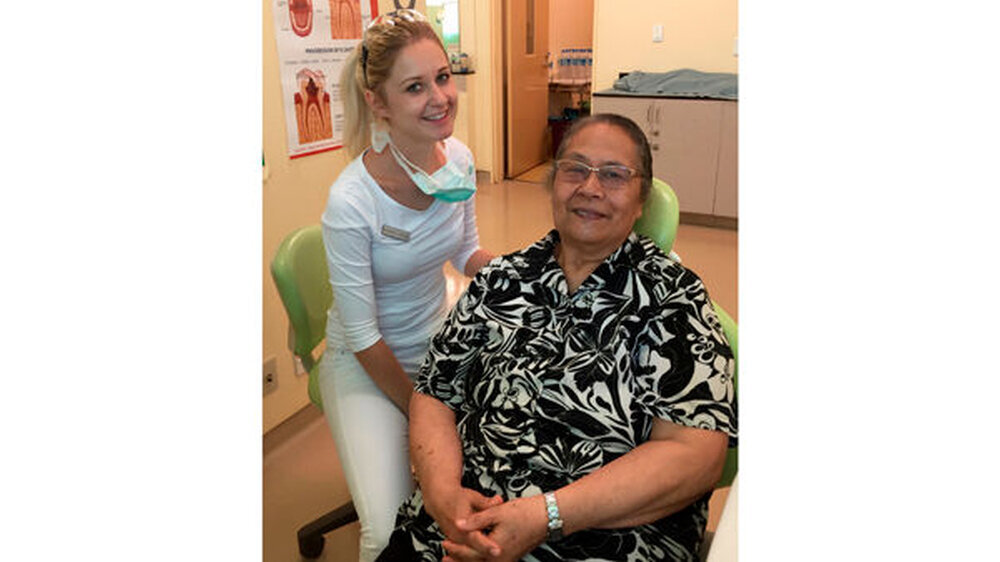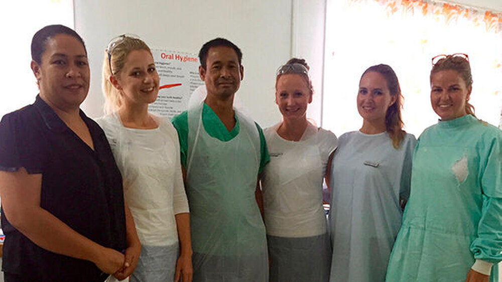 Die zwei Zahnärztinnen haben auf der kleinen Insel alle Hände voll zu tun!