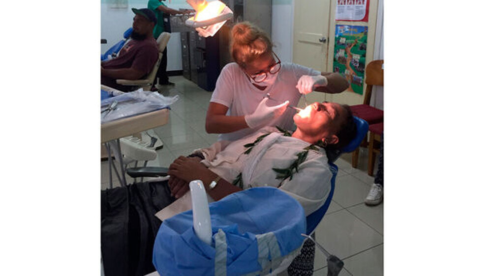 Das Ministry of Health in Tonga ermöglicht seit 2008 mit Spenden aus Japan und China und voluntärer Arbeit aus der ganzen Welt eine kostenlose zahnmedizinische Versorgung für jeden Einwohner. Bei der oralen Untersuchung unserer Patienten hatten wir leider nicht den Eindruck, dass dieses Angebot bisher in Gänze in Anspruch genommen wird. Oft war es deshalb zu spät, durch konservative Behandlungsmaßnahmen einen Zahn zu retten, und uns blieb nichts anderes übrig, als ihn zu extrahieren.