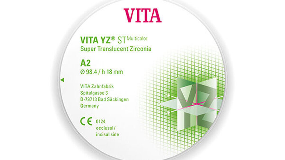 Die Ronden sind weiß und uneingefärbt (White) oder absolut farbtreu und voreingefärbt (Color) verfügbar. Die super- und extratransluzenten Varianten stehen auch multichromatisch mit integriertem Farbverlauf zur Verfügung, was neue, hochästhetische Spielräume eröffnet. Teil- und Vollverblendung ermöglicht das facettenreiche VITA VM 9-Verblendsystem. Für Farbvielfalt sorgt das Malfarbensystem VITA AKZENT Plus. Anwender haben die Wahl zwischen individueller Hochästhetik und einer absolut farbtreuen Basisversorgung. Ein Materialkonzept für alle ästhetischen Fälle.