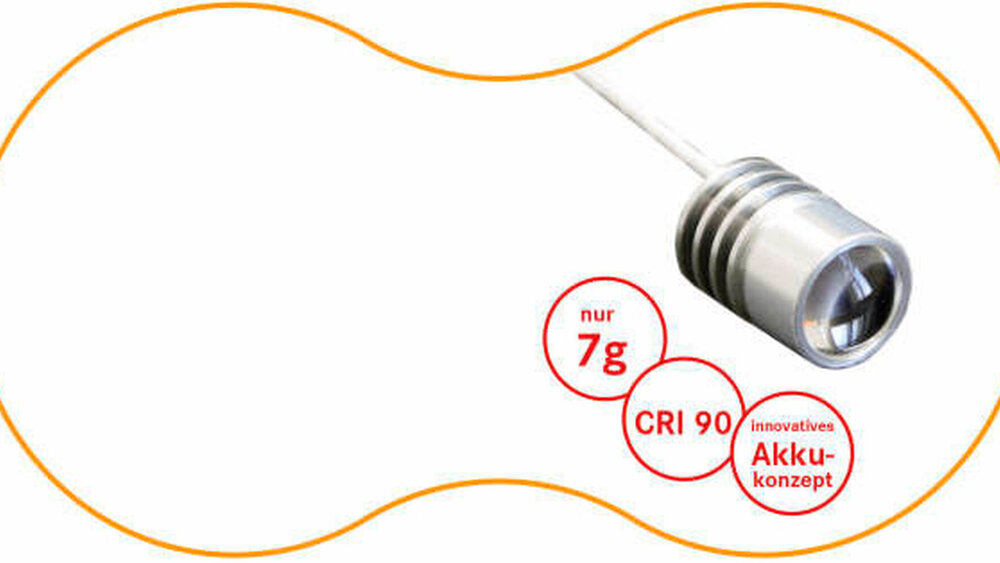 Die IDS Innovation spot‐on nxt ist ein hauseigenes Beleuchtungssystem für Lupenbrillen – das Optimum aus Gewicht, Lichtstärke und Farbechtheit. Mit dem geringen Gewicht der Leuchte von nur 7 Gramm überzeugt die spoton nxt mit einer Helligkeit von zu 45.000 Lux und einer Farbechtheit von CRI 90. Einzigartig sind die Touchfunktion zur Helligkeitsregulierung und die magnetische Kabel‐Steckverbindung. Durch die Befestigung des Akkus am Arm verspricht die spot‐on nxt höchsten Tragekomfort.
