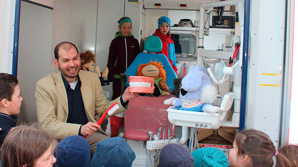 Unter dem Motto "Wenn wir einem Kind die Schmerzen nehmen können, dann hat es sich gelohnt” startete das Projekt "Zahnmobil für Syrien” in Greifswald. Der gebürtige Syrer, Dr. Mohammad Alkilzy, ist Mitarbeiter der Abteilung für Präventive Zahnmedizin und Kinderzahnheilkunde an der dortigen Universität und hat besonderen Einblick in die schwierige Lage in Syrien. Darum rief das Projekt Zahnmobil für Syrien vor rund einem Jahr ins Leben. Ziel ist, den betroffenen Menschen im Grenzgebiet Syriens eine zahnmedizinische Versorgung sowie Prävention anzubieten.