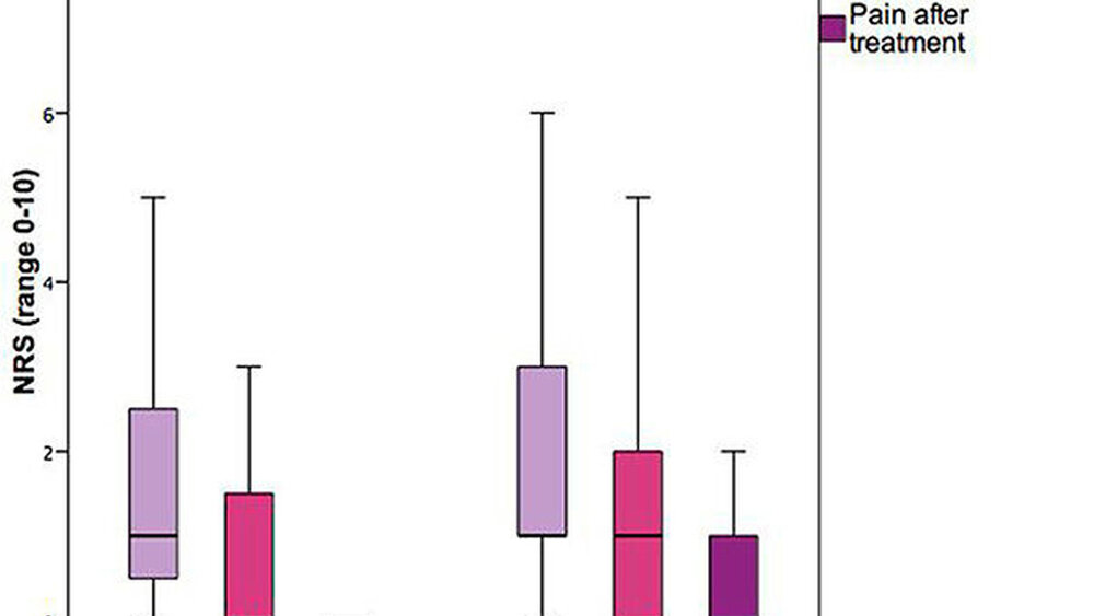 Zusätzlich wurden die Notwendigkeit einer zweiten Injektion, Schmerz während der Injektion (numerische Bewertungsskala (NRS)), Schmerz während der Behandlung (NRS), Schmerz nach der Behandlung (NRS) und andere mögliche Komplikationen (übermäßige Schmerzen, Blutungsereignisse, anhaltende Taubheit) berechnet.