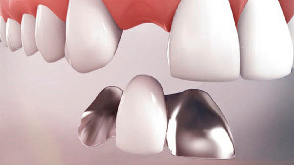 Lediglich für vollkeramische Adhäsivbrücken kann ein nonretentives Design klinisch langfristig erfolgreich angewendet werden, da Keramikflügel im Gegensatz zu Metallflügeln rigide sind und sich bei den in der Mundhöhle auftretenden Torsions- und Schälkräften im Gegensatz zu Metallflügeln nicht verbiegen. Aber auch bei vollkeramischen Adhäsivbrücken wäre die dargestellte zweiflügelige Adhäsivbrücke mit Verblockung von Eckzahn und Schneidezahn sehr kritisch zu sehen. Überzeugend positive klinische Daten für non-retentive Adhäsivpräparationen liegen nur für (einflügelige) vollkeramische Adhäsivbrücken vor.