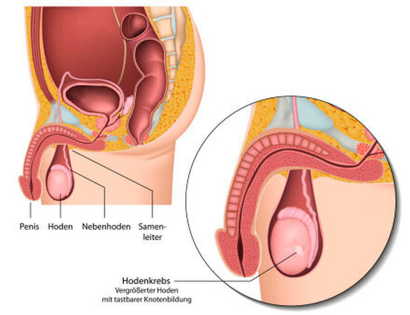 Hinweisend auf einen Hodentumor ist vor allem eine schmerzlose Hodenschwellung. Eine solche Veränderung bedarf daher stets der genauen Abklärung. Bei Säuglingen und Kleinkindern werden Hodentumore meist relativ rasch erkannt. Anders ist das jedoch, wenn sich der Tumor bei Jugendlichen entwickelt und Hoden-Veränderungen in der Zeit der Pubertät bedingt durch Schamgefühle erst vergleichsweise spät zur Diagnose kommen.