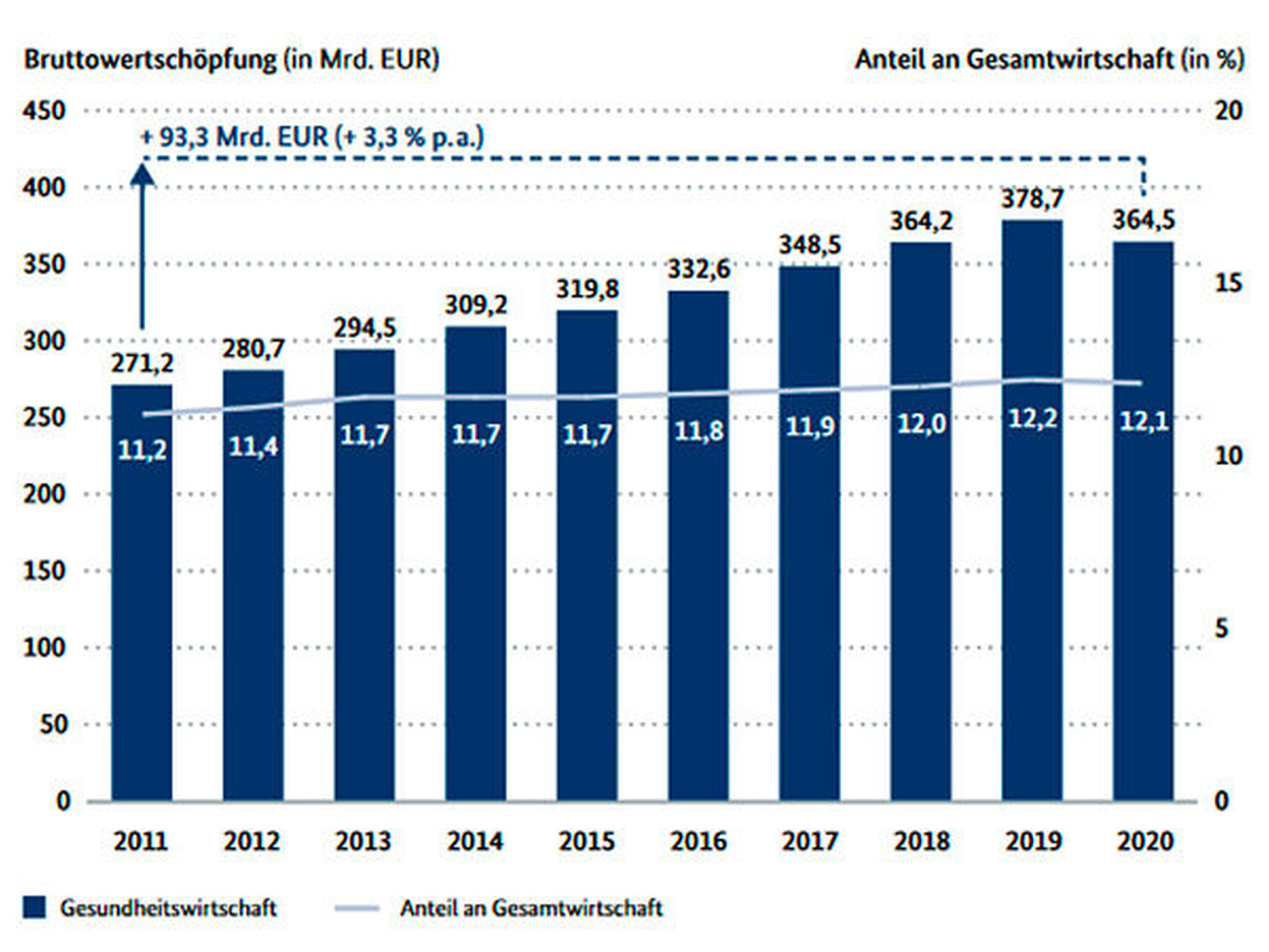 In den Zahnarzt- und Arztpraxen entwickelte sich die Bruttowertschöpfung laut GGR hingegen deutlich positiver: 1,1 Millionen Beschäftigte erwirtschaften 2020 rund 70,3 Milliarden Euro, 7,1 Prozent mehr als noch 2019 (65,6 Milliarden Euro).