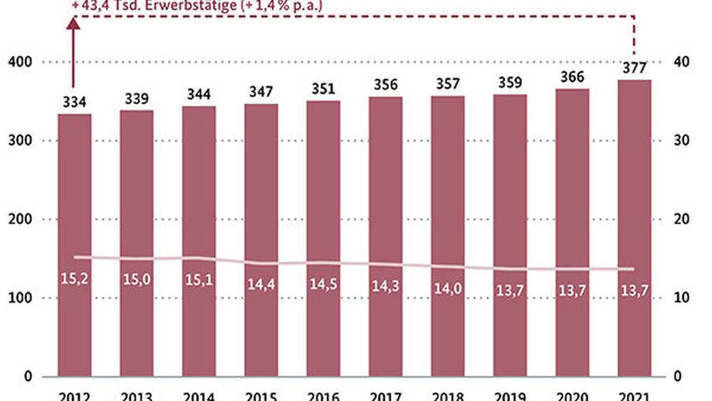 Etwa 26 Prozent der Erwerbstätigen in Arztpraxen und nicht-stationären Einrichtungen erwirtschafteten fast 50 Prozent der Bruttowertschöpfung, heißt es in dem Bericht weiter. Insgesamt arbeiteten 26 Prozent der Erwerbstätigen der nicht-stationären Versorgung in Arztpraxen. Damit ist der Erwerbstätigenanteil der Arztpraxen deutlich niedriger als ihr Wertschöpfungsanteil. Dies kann dadurch erklärt werden, dass die Einkünfte in Arztpraxen höher sind als in den anderen Bereichen der nicht-stationären Versorgung; je Erwerbstätigem also eine höhere Wertschöpfung generiert wird. Seit 2012 ist ein kontinuierliches Beschäftigungswachstum in Arztpraxen zu beobachten – mit Ausnahme des Berichtsjahres 2021, in dem ein Rückgang der Beschäftigtenzahlen zu verzeichnen ist.