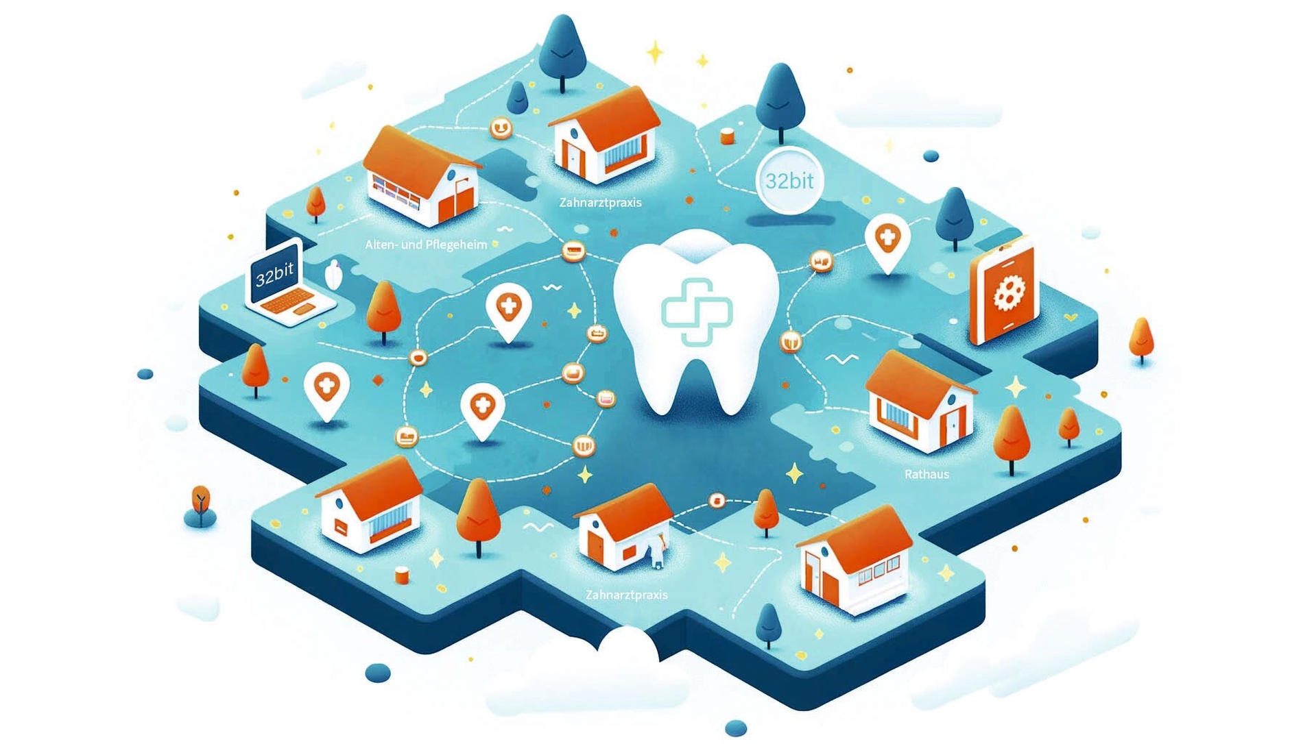 Die Idee ist eigentlich simpel: Bus mieten, Team buchen, Route berechnen, und schon geht's los. Die konkrete Umsetzung ist dagegen doch komplizierter: Seit einem Jahr arbeiten der Oralchirurg Dr. Sebastian Geiger und der Verwaltungsmitarbeiter Tobias Lippek an dem Projekt „32bit – Zahnarztmobil“. Ihr Ziel ist, die aufsuchende zahnmedizinische Versorgung neu zu denken: „Die aufsuchende zahnmedizinische Versorgung der Zukunft, so wie wir uns diese vorstellen, basiert auf einer Verknüpfung von zukunftsweisenden Technologien, allen voran der Digitalisierung, mit den bewährten Versorgungsstrukturen und Akteuren“, erzählt Projektgründer Lippek. „Wir wollen keine Parallelstrukturen aufbauen, ganz im Gegenteil! Wir glauben, dass nur durch Stärkung der vorhandenen Strukturen der Wandel zu einer zahnmedizinischen Versorgung der Zukunft gelingen kann. Und wir betrachten die niedergelassenen Zahnärztinnen und Zahnärzte als DIE wichtigsten Akteure. Wir wollen keine Strukturen ersetzen, wir wollen vorhandene Strukturen stärken! Dabei setzen wir auf öffentlich-private Partnerschaften.“