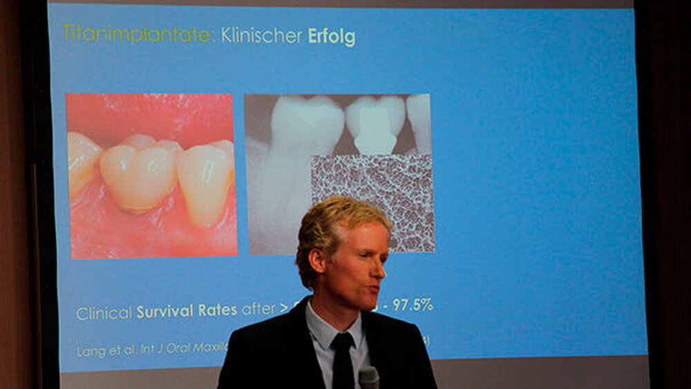 Zahnärztliche Implantate stellen heutzutage eine wissenschaftlich anerkannte Therapiealternative zum Ersatz fehlender Zähne dar. Die Überlebensrate für zahnärztliche Implantate ist nach adäquater Planung, Einbringung und Versorgung als sehr gut zu beziffern und beträgt nach fünf bis zehn Jahren, je nach Einsatzbereich, zwischen 95 und 100 Prozent. Grundlegend gilt es jedoch zu beachten, dass zahnärztliche Implantate einer intensiven Mundhygiene bedürfen. Neben der häuslichen “Implantatreinigung” muss eine regelmäßige Kontrolle und professionelle Reinigung durch den Zahnarzt erfolgen. Somit lassen sich Implantatentzündungen (etwa Periimplantitis) in aller Regel vermeiden.