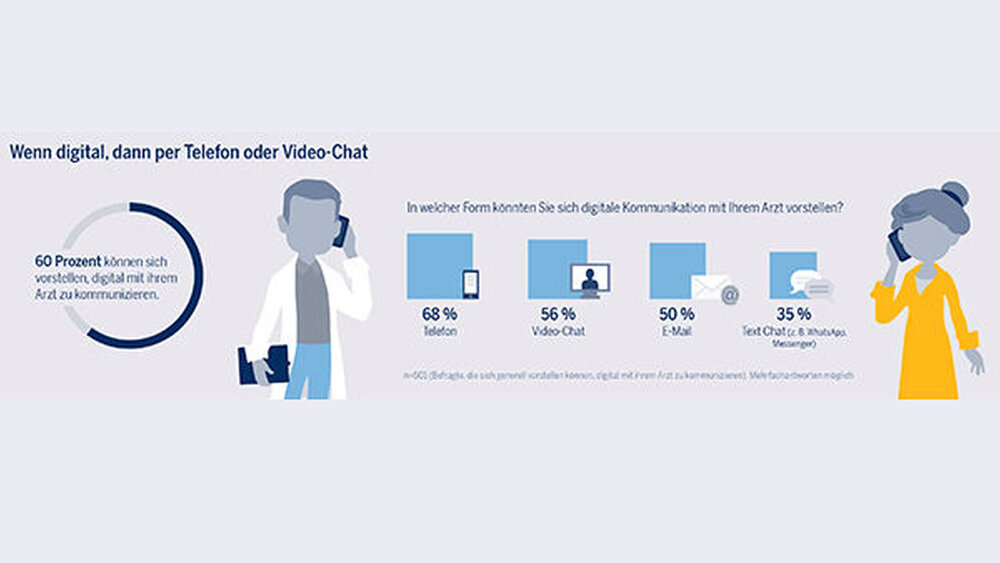 "Wenn digital, dann per Telefon oder Video-Chat", lautet ein Ergebnis der repräsentativen Patienten-Umfrage, die die Deutsche Apotheker- und Ärztebank (apoBank) online zur Digitalisierung des Gesundheitswesens durchgeführt hat.