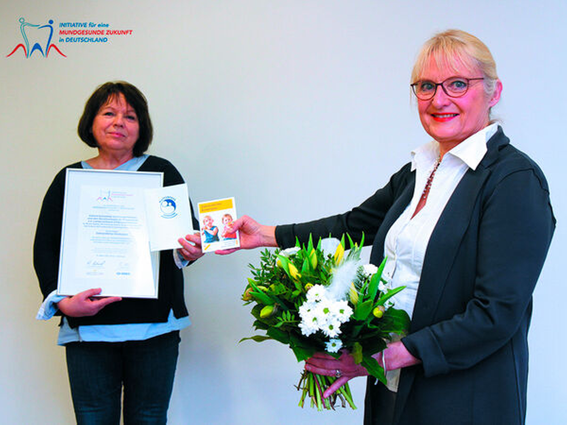 Der zweite Preis wurde anDr. Martina Walther, Zahnärztekammer Schleswig-Holstein und Doris Scharrel, Berufsverband der Frauenärzte (BVF) Schleswig-Holstein, verliehen. Die Zweitplatzierten setzen sich dafür ein, dass Frauenarztpraxen Schwangere bereits ab Beginn der Mutterschaftsvorsorge zu zahnmedizinischer Prävention motivieren und dabei den seit über 20 Jahren etablierten „zahnärztlichen Kinderpass“ der Zahnärztekammer einsetzen.