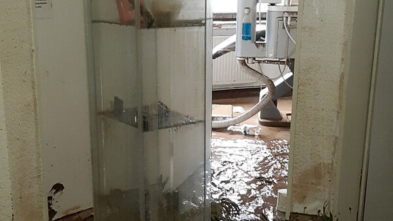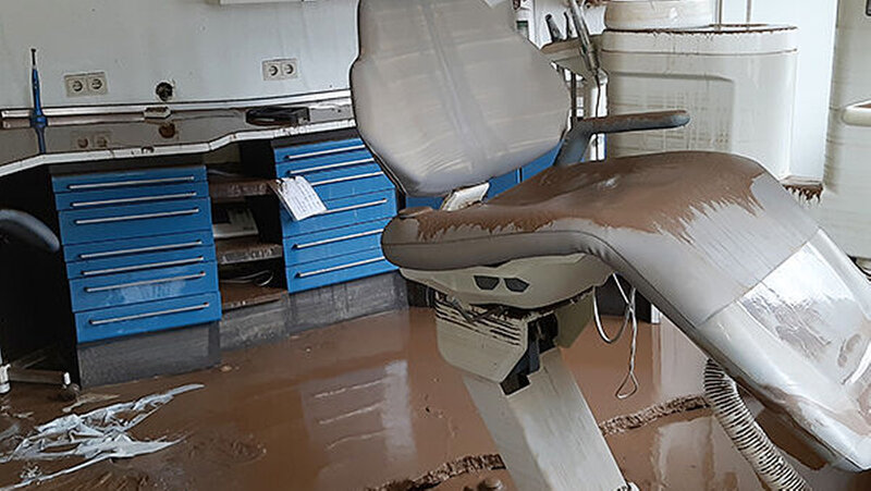 Mindestens 160 Zahnarztpraxen sind von der Flutkatastrophe im Sommer 2021 betroffen. Die Schäden reichen von Verdienstausfällen wegen Stromausfall bis hin zum Totalverlust der Einrichtung und baulichen Infrastruktur.