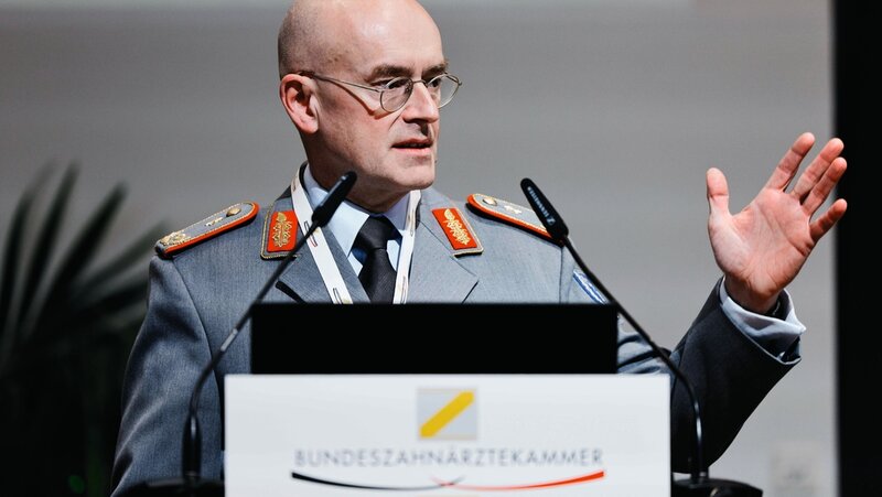 „Dafür brauchen wir Ihre Hilfe“, appellierte von Uslar an die Delegierten der BZÄK-Bundesversammlung. In einer solchen Lage müsse die zivile Gesellschaft die Bundeswehr unterstützen. „Verteidigung und Abschreckung sind eine gesamtstaatliche und gesamtgesellschaftliche Aufgabe“, betonte der Generalarzt der Bundeswehr.